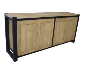 Buffet 4 portes en hévéa 100% massif et fer de fabrication artisanale.