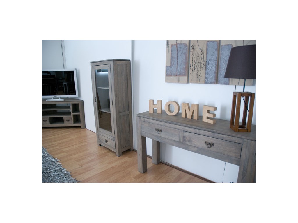 Colonne vitrée 1 porte 1 tiroir en Hévéa massif de fabrication artisanale.