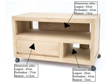 Meuble TV 1 tiroir en Hévéa massif de fabrication artisanale.