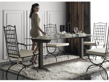 Table rectangulaire Victoria de salle à manger en Fer Forgé de fabrication artisanale.